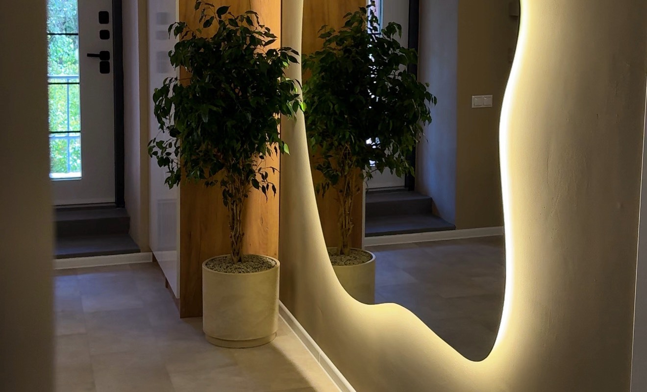 «Этакий островок гармонии среди городской суеты, где правит минимализм. Настоящая сила выражается в трансформации цвета в мягкий, природный оттенок», проводя рукой по фактурной стене. Кстати, о последней: отделка в новом пространстве выполнена при помощи декоративной штукатурки и покраски стен натуральных оттенков. И все это – в дивном союзе с деревянными элементами из теплой палитры.